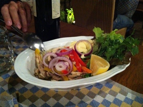 Yeah, I did drink some wine over the dinner with Cristina and Antonio. Antonio did a good job of pouring the wine into my glass. 🙂 He said it is a bottle of local Italian wine. It tasted very good. And all the pasta dishes last night were great. I was in heaven!