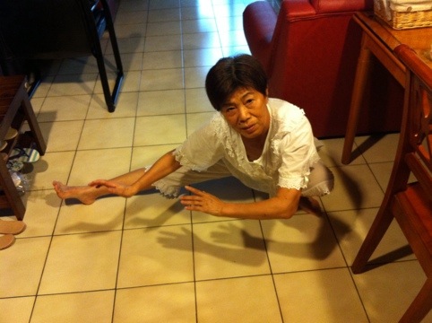 The stretching looks way too easy for your Mom. Just confirms my belief that your stretching ability is natural talent rather than practice! 🙂