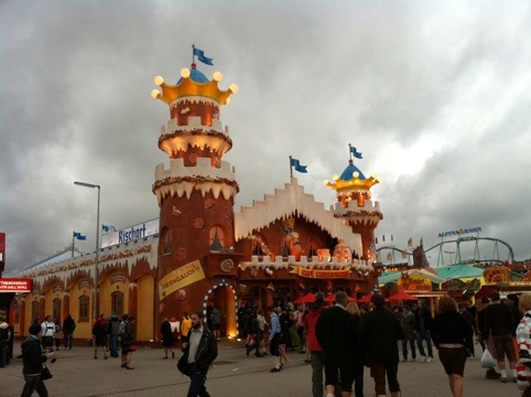 After I checked in to a hostel today (lodging during Oktoberfest is tough; I had to book two separate places in Munich), I went to do my laundry. It’s another day with a light rain. Lots of places are not open on Monday. I decided to go back to the Oktoberfest. No, it’s not because of the drinking. I didn’t have the chance to explore the festival ground. There are lot of things to see. For example, the decoration of the beer halls can be very interesting, depending on the theme of the hall or the company/family that operates it. Or, some food stands can have amazing decorations as well. Lots of food or snacks as well. In addition to pork shank, in two days, I have had grill chicken and grill river red trout for meals there. The food is fitting the theme of Bavarian, which is fun!