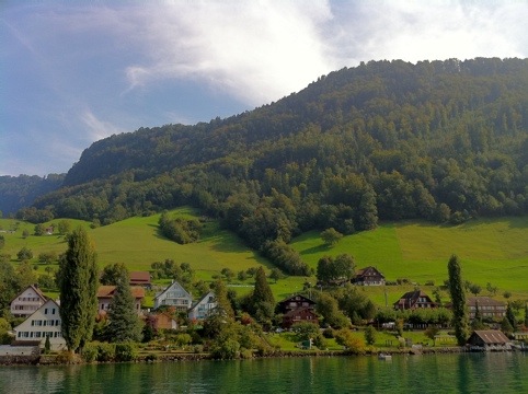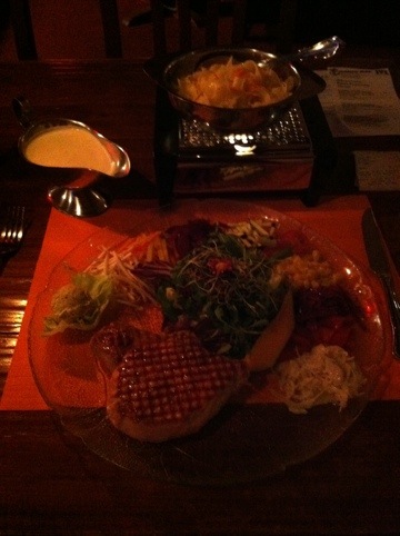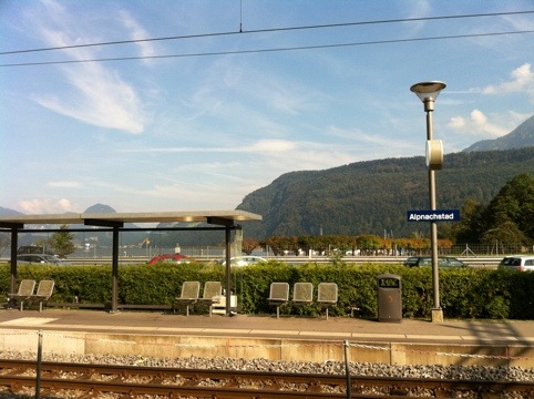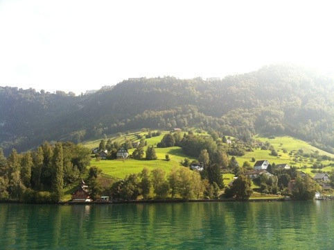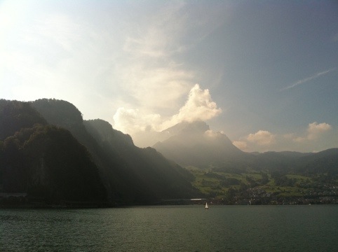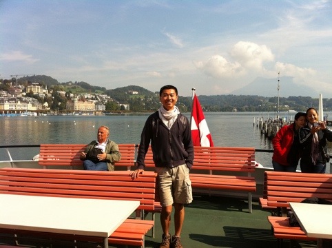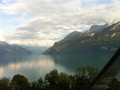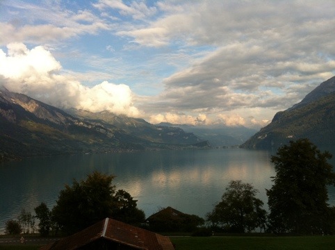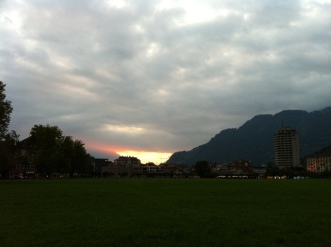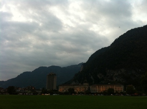 After I arrived in Lucerne last night, i just tried to get settled into the hostel, and slept. I chatted with my only roommate a bit late last night, and exchanged our experience in Germany. He is from LA. Similar to me, he doesn’t drink either. He didn’t walk in to any of the beer halls at the Oktoberfest in Munich. He was very interested in what I saw in the hall. This morning, I walked along the Lake Lucerne, and headed to the Old Town. It was foggy in the morning but clearing up slowly. A walking tour again – I seem to get a routine going when I visit a new city. I checked out the Chapel bridge, with some interesting paintings illustrating the Swiss and local history. I then got some brunch food at Jazzkantine. I got a nice sardine bruschette. It’s an arty kind of cafe/bar. I then walked to see the Lion Monument, the dying Lion of Lucerne. It is carved out in memory of the heroic death of the Swiss mercenaries at the Tulleries in 1792. Continuing the journey, I went to see the Musegg Wall, which is part of the rampart walls built in 1386, and climbed up in one of the towers. I walked through the Spreuer bridge before I caught the boat to Alpnachstad, and took the train to Interlaken. The trip was a bit longer than just taking the train from Lucerne. Since it’s a sunny day today, I decided to take a longer route and enjoyed the view from the lake. The boat ride was relaxing. Especially, I had a pleasant conversation with a English lady during the boat ride. Mountain is the specialty in Interlaken. I only got to see part of it since I arrived in the late afternoon. I hope to get to see more of it tomorrow. Oh, dinner. I went to Goldener Anker and got a pork chop. It came with a big salad on the plate, which is what I was looking for. They did a good job to offer my big meal of the day.