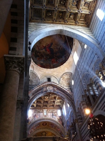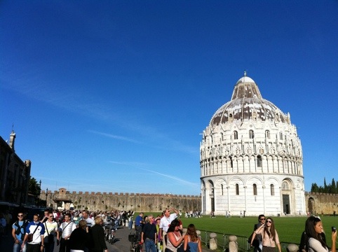 It’s an early start. I decided to take an hour long train to Pisa, west of Florence. Not only it gave me a chance to see the country side a little, yes, the leaning tower! I got to see it with my own eyes. The train ride and the bus the to the plaza was relatively convenient, thanks a couple of locals who were really helpful to give me the direction. When I arrived in the plaza, I was surprised how tilted it is! No, I didn’t take a picture of me trying to hold on to it. Plenty of them did as you can see in some pictures. I also determined to climb up to the top – remember I don’t like height? The climb was weird. I was trying to step on the middle of the steps, but kept leaning to one side or the other. It’s a leaning tower and leaning steps! I can see the wearing of the step is uneven due to the leaning. And the top, and the very top, the view is amazing. I tried not to hold on the outside rail as much as I can. I was shaking but trying to be cool! I quickly climbed down and claimed victory. I also quickly browsed the cathedral with the beautiful paintings/mosaic inside out. I would love to spend more time here but I need to be on time for my train to Rome. So I said good bye and headed back to Florence. The short trip to Pisa was exciting. When I arrived in Florence, I realized that I got some time to take a walk in the Boboli garden. It’s a sunny day with a beautiful view in the garden – another place I wish I have more time to explore. Well, I tried my best! I enjoyed smelling the scent of jasmine as soon as I stepped into the garden. I then took the train to Rome in the afternoon. While reading the tour guide, I realized that I only have a little over a day in Rome, with an early flight back home. I hope I can get to see enough of Rome with the little time I have. The train ride to Rome was pleasant. Hills, houses, and grape fields were passing by. This is my last city before I go home!!!