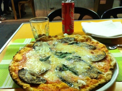 I arrived Rome in the late afternoon. The last lodging is comfortable and close to the train station. I decided to head out and to check out as much as I can. After some walk, I arrived in the Colosseum. As soon as I arrived in the area, and saw the site, I realized that, the whole place is huge! I knew it’s big but i didn’t expect it to be that huge. After I walked by the Arco di Costsntino, the Roman forum, and other interesting sights in the ares, it’s very clear that there is no way for me to see enough of Rome in one day. That actually relaxed me. I will just explore whatever I get to, and enjoy the atmosphere. After some hunting, I found the pizza place recommended by the owner of the hotel. That’s her favorite place. It’s not a tourist place, which means, English doesn’t work too well. I just follow the suggestion from the waiter and ordered a pizza. Not sure what I ordered until I saw it. It’s eggplant, mushroom, and basil with a very thin crust pizza. It’s delicious and not filling. That’s it for me for tonight. I am heading back for bed!