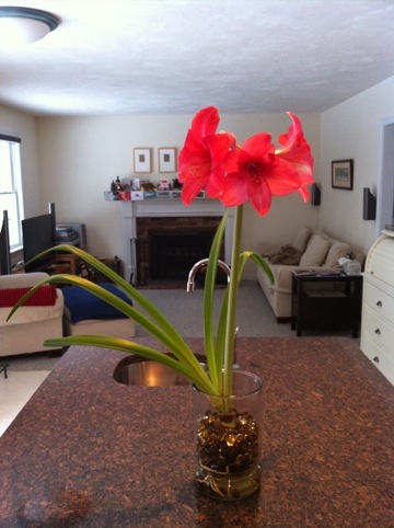 - Grow an Amaryllis: I got the bulb at the hardware store and was wondering, why not. It bloomed over the holidays and into the New Year. It’s pretty!