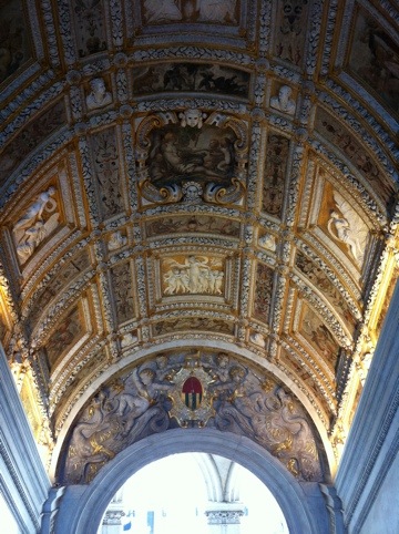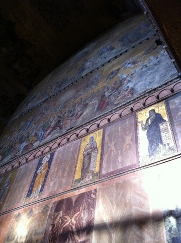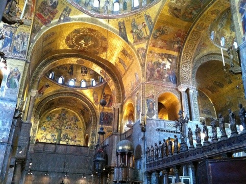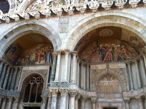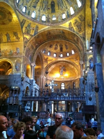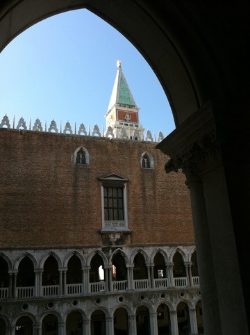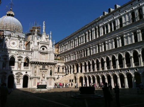 Taking the water bus gave me an idea of where I wanted to visit. Piazza San Marco was where I went after Lido. The St. Mark’s Basilica is very impressive. The paintings throughout the inside of the building are amazing. I also found the floor patterns are very interesting, too. The bell tower (campanile) next to the basilica is standing tall and proud. The entrance and parts of the piazza were cover in water. I wonder how it impacts the flooring of the basilica. In the same piazza, I went to the Palazzo Ducale, the Doge’s Palace. Besides the paintings, the wood carved ceilings, and the architecture, the prison connecting to the palace is also interesting to look at. The ticket to the palace also includes the entrance to the Correr museum, the Archeological museum, and the monumental halls of Marciana national museum. After two scopes of gelato for lunch, I also went to these museums. Some good exhibits about the history of Venice, sculptures, drawing, armories, etc.
