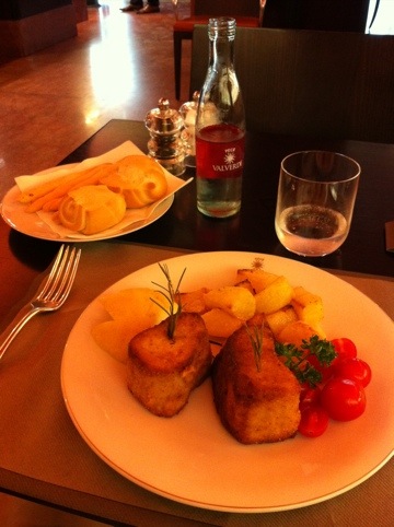 This is my last day to explore Milan. So I went to the cathedral Duomo di Milan, which is the center of Milan. The plaza where the cathedral is located is very big. The Gothic architecture of the cathedral is quite interesting. It was hectic and busy outside, but very peaceful and quiet inside. The stained glass of the cathedral is beautiful. Several paintings hung inside the cathedral almost look like floating in the space. It was a sunny day and the view from the roof of the cathedral was very impressive. After the visit to the cathedral, I took a walk to the Galleria Vittorio Emanuele II shopping arcade, which is next to Duomo. The architecture is also very interesting. It’s clear that this plaza is a magnet of tourists. Lots of people were here, which made it challenging to enjoy the scenery. Well, maybe I am used to the Alps in Switzerland… I tried to see if I can visit Leonardo da Vinvi’s mural of The Last Supper. All tickets were sold out – a tourist magnet again. So, I stopped by a gelato store near the location, and got a scope of chocolate and a scope of vanilla. Although I missed the last supper, I didn’t miss my gelato! I got some time for lunch before the train ride to Venice. I took the suggestion from Lonely Planet tour guide and went to the Peck Italian Bar. It’s a chic and sleep place. It fits well in Milan I guess. The food was pretty good. I got some breaded veal and potato.