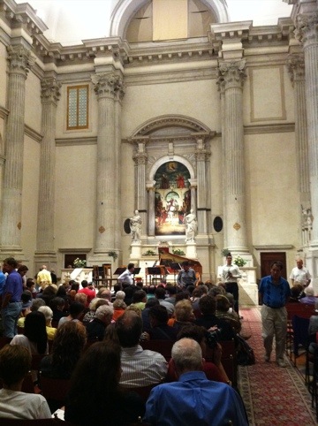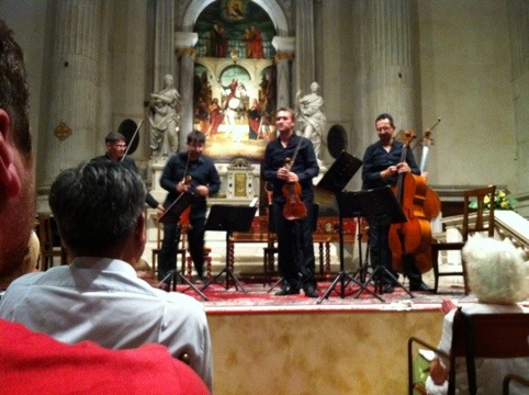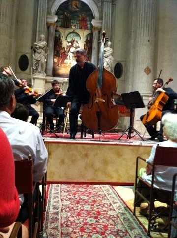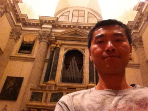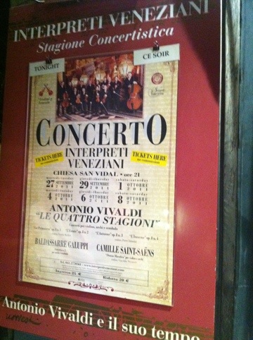 It was challenging to find my hotel in Venice. There is a saying that every gets lost in Venice. I had to call my hotel and asked where they are exactly. The address (if there is a clear one) and street names can be confusing. Fortunately, I found my hotel and it is just next to a plaza. While looking for my hotel, I walked by a church and noticed a concert tonight. Someone was rehearsing for the concert. It was played by the group Interpreti Veneziani (www.interpretiveneziani.com). The program was Vivaldi’s Four Seasons. After I had a light dinner of a prosciutto sandwich, I went for the concert. They did a fantastic job and the acoustic in the church was very good. It was not a big place but perfect for this concert. The arrangement of the last piece by Saint-Saens was very good (they called it Danza Macabra). The encore piece was played by the bass, with company of a cello and violins. That was brilliant. The trip to Italy has been somehow challenging. I am glad I had a fun ending today. Especially, I had a scope of lemon and a scope of peach gelato after the concert!