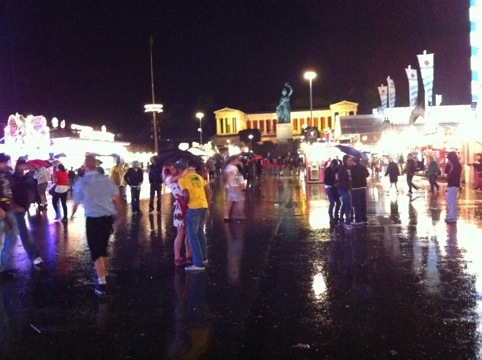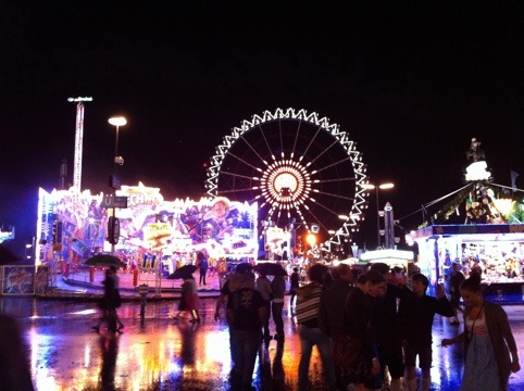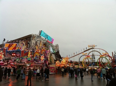 I took the train from Vienna to Munich today. It was a pleasant and comfortable 4 hours ride. I got to read the tour book and looked into what I can explore in Munich. When I checked into the hotel in mid afternoon, I asked the lady at the front desk what I can do today. Without hesitation, she said Oktoberfest! I organized my luggage a little after I got into the room. When I turned on the TV, there was a non-stop Oktoberfest coverage. Well, I decided to check it out. Especially, it’s a raining day and there’s not much going on in the Sunday afternoon.