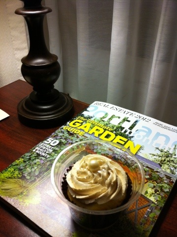 I just returned from a business trip to Portland, Oregon. I went to a nice, small Italian restaurant after an internal conference at Intel (I did a presentation on improving efficiency of the product development). It’s a cute place and the food was fantastic. The decoration in the restaurant is neat too. There are soccer shirts nailed on the ceiling. Let me share some pictures here. Oh, and I got a cupcake from my favorite cupcake place in Portland. My guilty pleasure!
