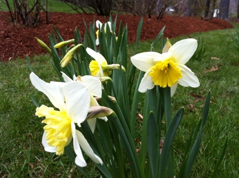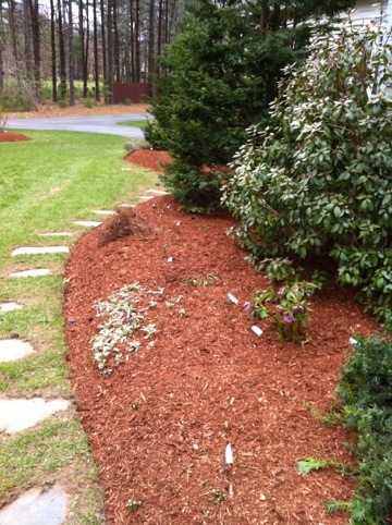 When I came home from my trip, my garden helper Sam almost finished edging and mulching the garden. He has been a great help and the lawn looks great. Spring is here for sure!