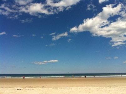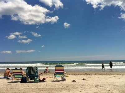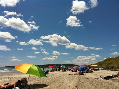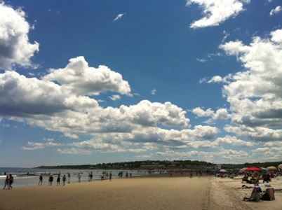 Oqunquit is famous for its beautiful beach. Although the water was too cold for me to jump into it, lying on the beach was wonderful. I arrived in the beach around lunch time. I got a lobster roll for lunch and enjoyed it very much on the beach. For a couple of hours, I was lying on the beach, reading a book, day dreaming, people watching, or staring at the clouds. It was not too crowded and the sky was beautiful. It was wonderful.