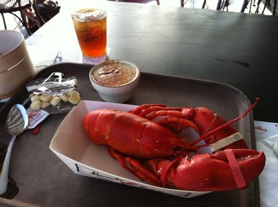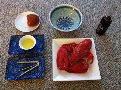 I stayed over night and headed home the next day. I needed to pick up something for dinner. I guess it was a lobster holiday for me. I picked up some little neck clams and guess what, a lobster! After I arrived home and got myself cleaned up, I cooked the clams and the lobster. The lobster was cooked perfectly, to my surprised! This is the first time I steam-cooked the lobster. The color was beautiful and meat was moister and tender. I used the combination of butter and olive oil for lobster dipping. Yum! A lobster holiday indeed!