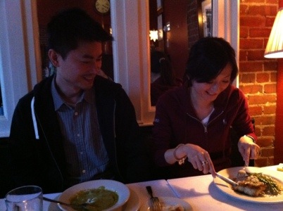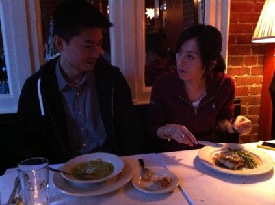 A couple of weeks ago, my cousin Andy and his wife Vivian visited Boston from Shanghai. Unfortunately, thanks to the unpredictable Boston weather, it was cold and rainy. Andy also got sick from perhaps the food he ate in New York before he came to Boston. We only managed to drive around the Boston in the car, and stopped at the Metropolis Cafe in the South End for dinner. Andy was well enough to try a bowl of vegetable soup, and had a piece and two of the fish from her wife’s dish. We had a good time, however! I sent a picture of the Boston blue and sunny sky in the weekend after they left. They will have to come back again and stay longer to really enjoy Boston!