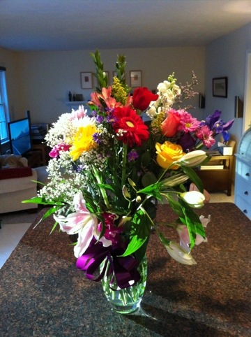 The game was over. Pats lost. Grrrr…. At least the flowers are beautiful!